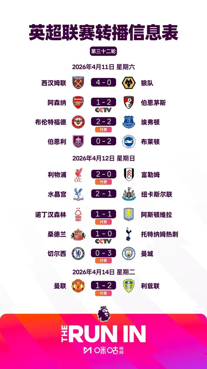 北京时间4月14日凌晨,英超第32轮比赛全部结束。领头羊阿森纳主场翻车,1比2不敌伯恩茅斯,爆出本轮联赛最大冷门;曼城则是另一种“翻车”,在与切尔西的强强对话中以3比0的比分掀翻蓝军,少赛一场仅落后阿森纳6分——争冠悬念再起,下轮将迎来与枪手的“天王山之战”;十人曼联1比2不敌利兹联,目前与维拉同积55分,分列第3、第4位;利物浦2比0富勒姆,继续巩固欧冠席位;切尔西本轮输球后距离欧冠区已相差4分,领先身后的布伦特福德和埃弗顿仅1分。