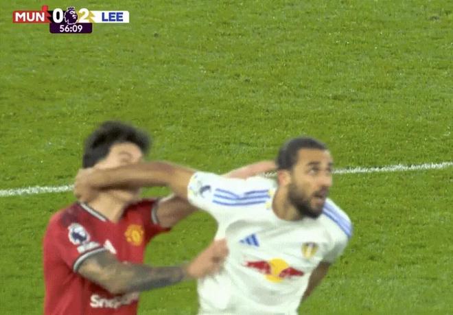 下半场比赛,曼联不仅没能扭转局势,反而屋漏偏逢连夜雨,再遭重击。第55分钟,赛场上出现了极具争议的一幕,曼联中卫利桑德罗-马丁内斯在与对方前锋勒温拼抢时,手上有一个拽对方头发的动作,裁判在查看VAR之后,直接向利桑德罗出示红牌,将他罚下场!这可是利桑德罗曼联生涯以来,首次被直接红牌罚下。