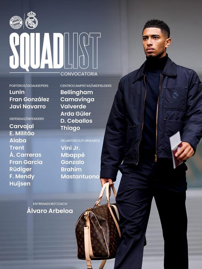 皇马客战拜仁名单:姆巴佩、维尼修斯领衔,库尔图瓦继续缺席