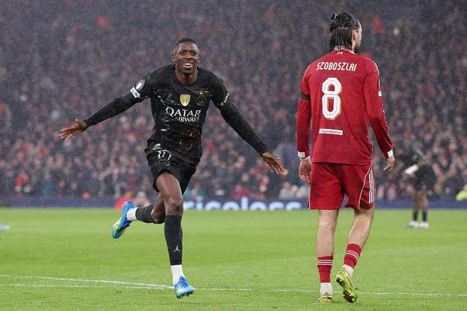 首回合比赛,大巴黎在主场2-0完胜利物浦。而次回合做客安菲尔德球场,开场第9分钟,登贝莱直塞险些造成单刀,随后吊射被马马尔达什维利扑出。