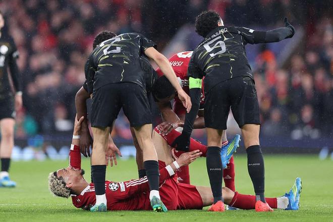 第28分钟,利物浦折损大将。埃基蒂克无对抗受伤倒地,随后被担架抬下场,萨拉赫替补登场。
