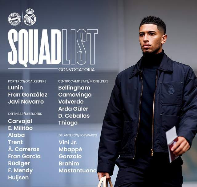 卢宁镇守大门,阿诺德、吕迪格、米利唐、弗兰-加西亚组成后防线,中场则是巴尔韦德、贝林厄姆、居莱尔;双前锋是姆巴佩、维尼修斯。唯一的悬念是,卡马文加和皮塔奇谁会占据中场首发的一席之地。各种迹象表明,皮塔奇会进入首发阵容。