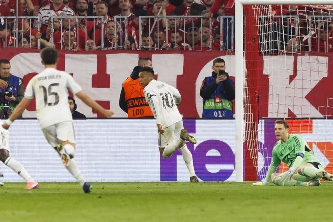 随后比赛进入了进球大战的节奏:帕夫洛维奇在第6分钟接基米希的角球头球扳平,但居莱尔随后凭借一记精彩的任意球梅开二度,而拜仁神锋哈里·凯恩则在第38分钟冷静破门,斩获了他本赛季在各项赛事中的第50粒进球!半场结束前,姆巴佩的破门让双方带着总比分4比4的平局进入更衣室。