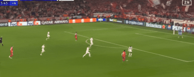 那一球,皇马除了熊与姆巴佩,都已回撤禁区,但拜仁禁区前排开八个人。基米希还在抬手要球:人多,要利用宽度啊!