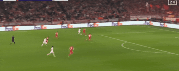 拜仁整个右路,包括但不限于奥利塞,存在感极大:第一球是帕夫洛维奇的得分,第二球却是右路围攻良久后,皇马密集拜仁右路,凯恩中路找到了射门机会。