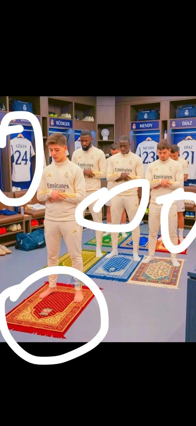 皇马球员在更衣室祈祷?球迷:这是一眼假的AI图片