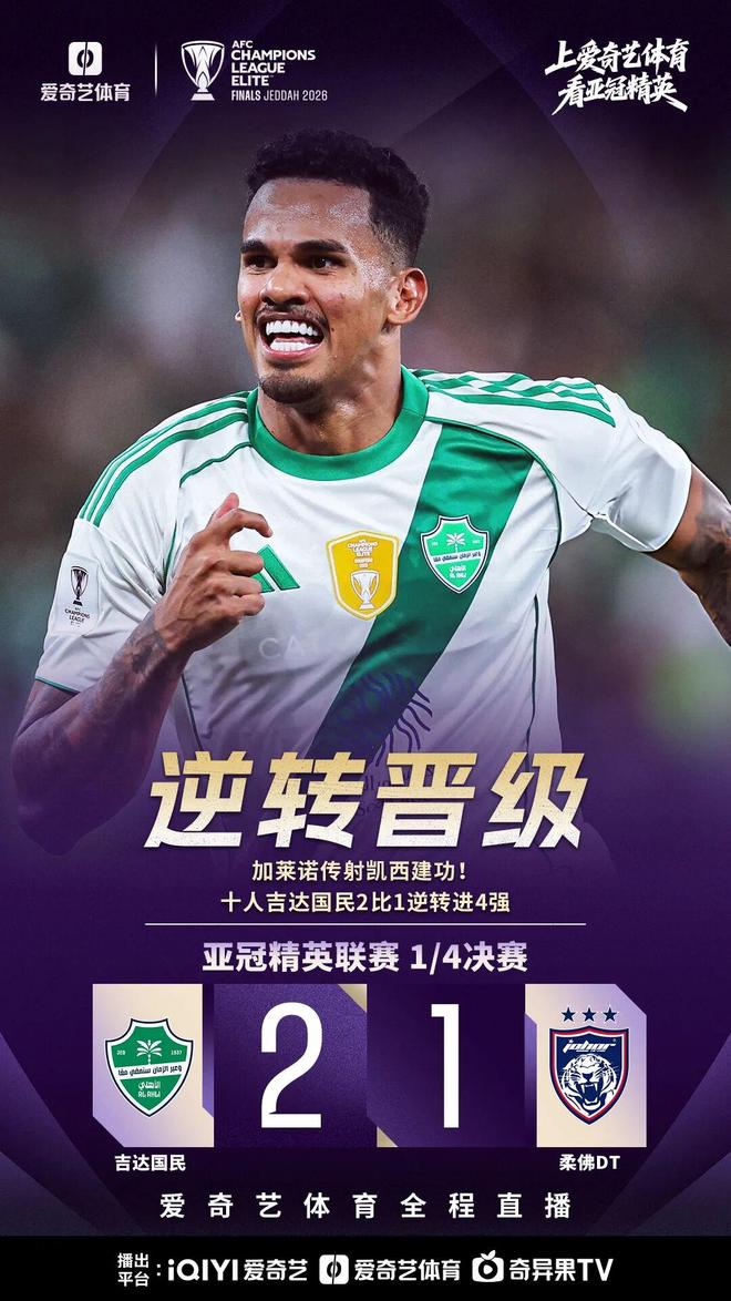 吉达国民对阵柔佛DT,凭借加莱诺与凯西的发挥,卫冕冠军2比1晋级。