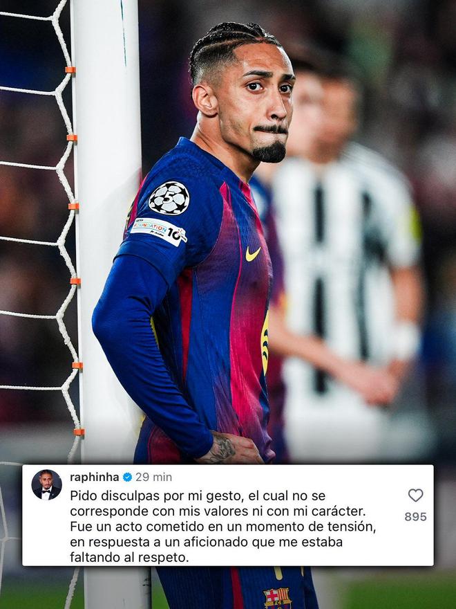 DAZNFutbol的独家视频在Instagram迅速传播。24小时内,拉菲尼亚主动在该视频下留言道歉:「对不起,我的手势——这不是与俱乐部价值观一致的行为。」
