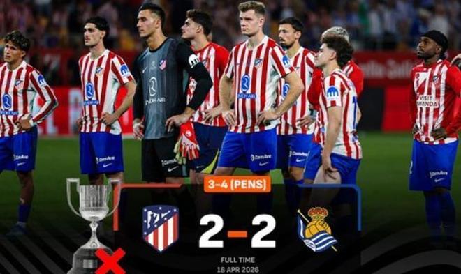 北京时间4月19日清晨,2025/26赛季西班牙国王杯决赛落下帷幕。马德里竞技与皇家社会鏖战120分钟,2比2难分高下。点球大战中,瑟洛特、阿尔瓦雷斯失点,最终以点球3比4、总比分5比6饮恨败北。皇家社会队史第四次捧起国王杯冠军,而马竞则是延续近11年来,只有一座西甲冠军奖杯的尴尬。