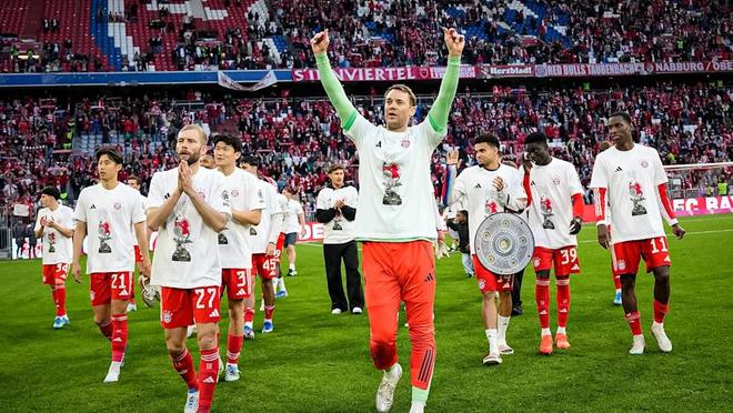 曼努埃尔·诺伊尔(Manuel Neuer)追平托马斯·穆勒(Thomas Müller),以13座德甲冠军并列队史第一。