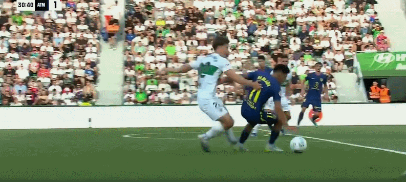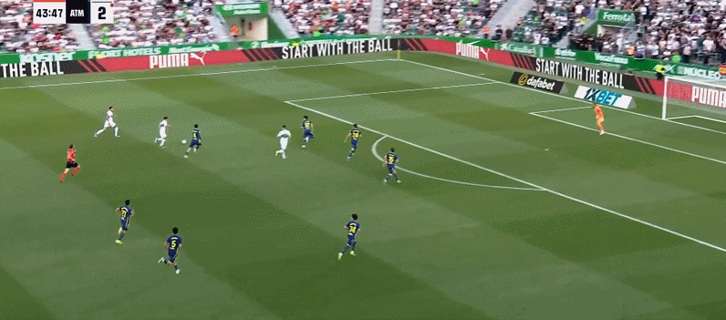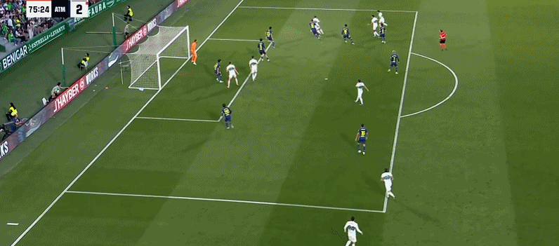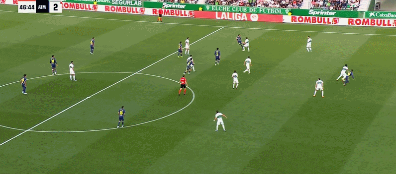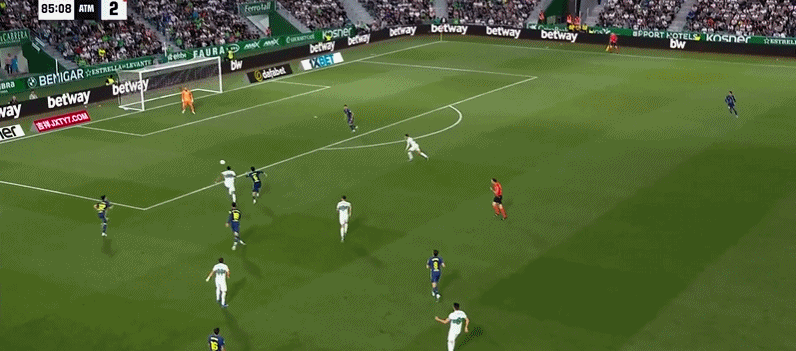 第75分钟,阿芬格鲁贝尔送助攻,安德烈-席尔瓦推射破门!埃尔切3-2马竞