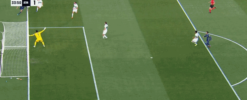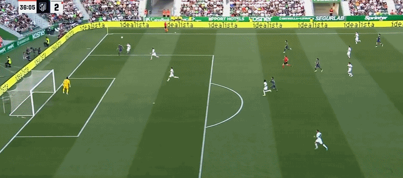 第36分钟,冈萨雷斯底线极限救球,随后挑过门将头球破门!马竞2-2