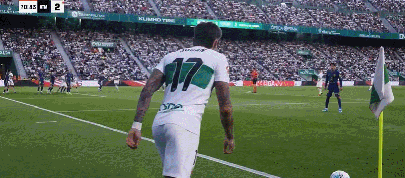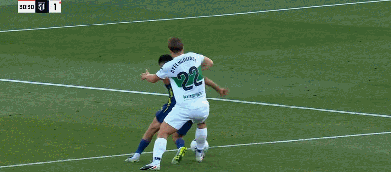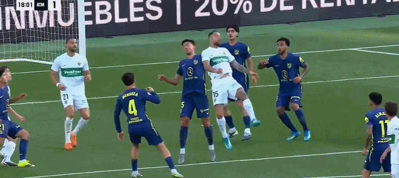 第18分钟,阿芬格鲁贝尔将比分扳平!埃尔切1-1马竞