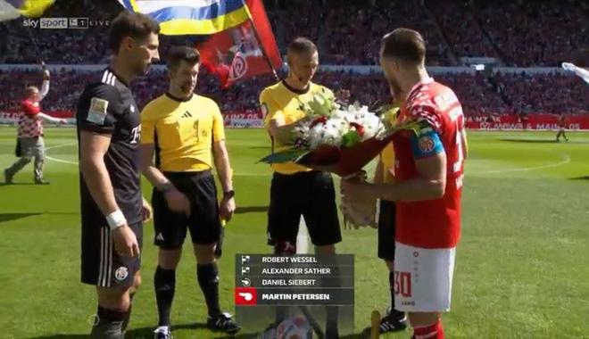 本场比赛开打前,美因茨队长西尔万-威德默代表俱乐部向拜仁送了一束鲜花和一瓶香槟作为冠军礼物。